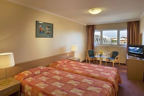 Dubbelsäng, fransk säng och superior rum med panoramautblick på Hotel Arena i Budapest